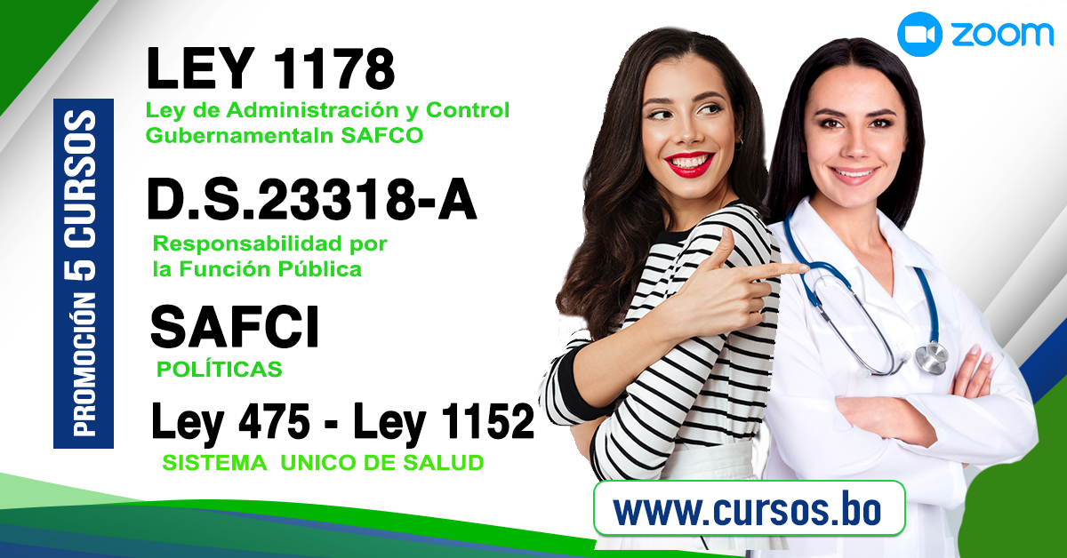 Curso Ley 1178 SAFCO, DS 23318-A Políticas SAFCI, Ley 475 y Ley 1152 Sistema Único de Salud virtual En VIVO por ZOOM