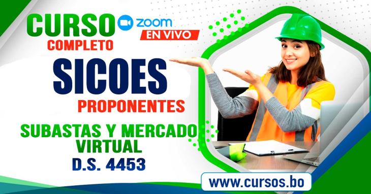 Curso completo del SICOES D.S. 0181 NSABS - (Uso de Medios electrónicos en Contrataciones Estatales) - D. S. N° 4453 - R.M. N° 021 - Catálogo Electrónico y Compra Hecho en Bolivia formularios del SICOES incluye uso y Manejo del INFOSISCON Dirigido a EMPRESAS Y CONSULTORAS (Mediante Zoom EN VIVO?) Ver 02-23